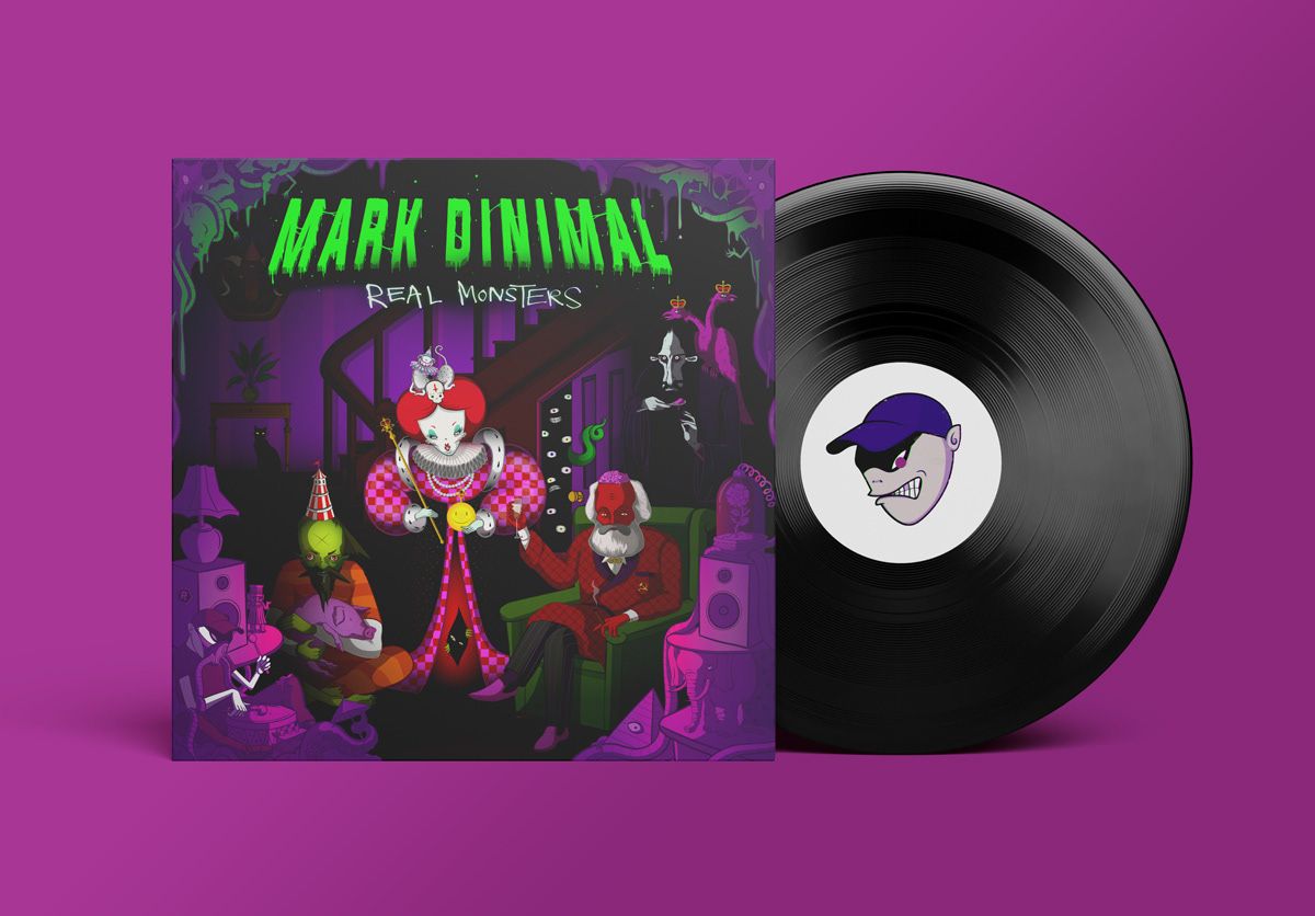 For the EP artwork, I designed a spooky house setting, where tracks like “Rasputin”, “Manson”, “Lizzy”, and “Marksism” come to life through historical references hidden throughout the design. The characters live together in darkness, adding a sense of mystery and unease. Easter eggs referencing key moments in each figure’s history create a layer of intrigue, while the overall tone mirrors the haunting atmosphere of Mark’s music.